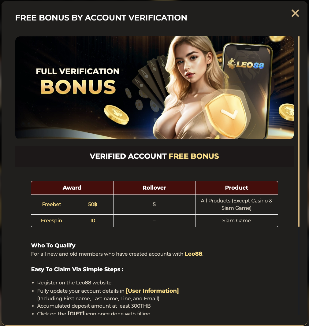 - Claim at Event Detail https://leo88.win/promotion/account-verification