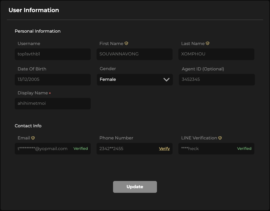 - Claim at User Information
