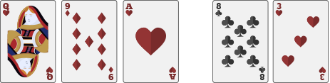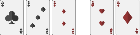 - Lá bài của Blue Bull: [Ace ♥] [3 ♦] [2♦] , [2 ♣] [Ace ♥]