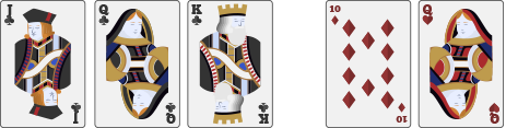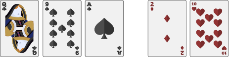 - Lá bài của Red Bull: [Q ♦] [K ♣] [J ♥] , [Q ♣] [K ♥]