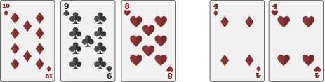 - Lá bài của Red Bull: [5 ♦] [5 ♣] [J ♥] , [4 ♣] [4 ♥]