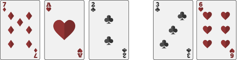 - Lá bài của Red Bull: [7♦] [Ace ♦] [2 ♦], [3 ♦] [6 ♦]