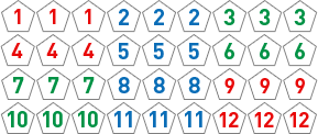 Trò chơi “Siêu Xúc Xắc Màu” bao gồm 3 con xúc xắc và mỗi con có 12 mặt (được đánh số từ số 1 đến số 12). Các con số được quy định màu như sau: